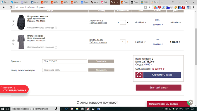 Промокоды дают возможность приобрести брендовые вещи по низкой стоимости. А если использовать их во время акций в Finn Flare, выгода становится еще более существенной. Самые большие распродажи и скидки ждут вас в «Черную Пятницу». В это время скидки достигают до 90%. Обычно в представленный период покупатели стремятся приобрести как можно больше вещей. В «Киберпонедельник» купить товары от финского бренда можно также со скидкой до 90%. Топы, пуховики, джинсы, платья и т.д. реализуются в это время по низкой стоимости. В данный период разрешено использовать и промокоды.